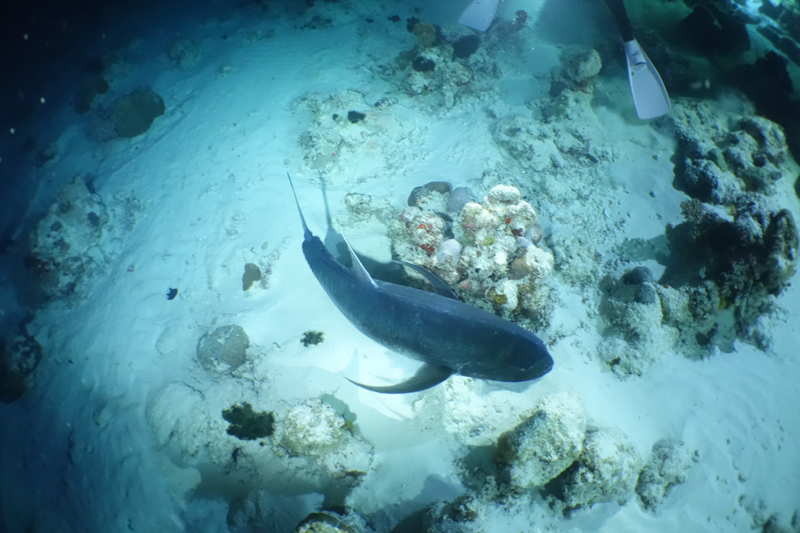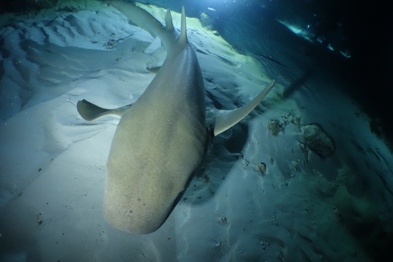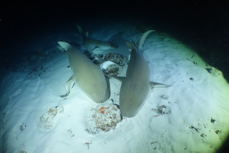 ナイトダイビングでは、ナースシャーク、大きなロウニンアジ、スティングレイがぐっしゃりです!