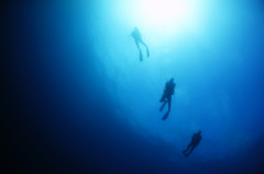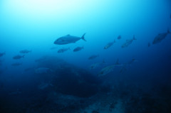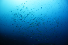 もう一度青い層に入って行くと、メジロザメやエイラクブカ・カンパチygの群れなどなど