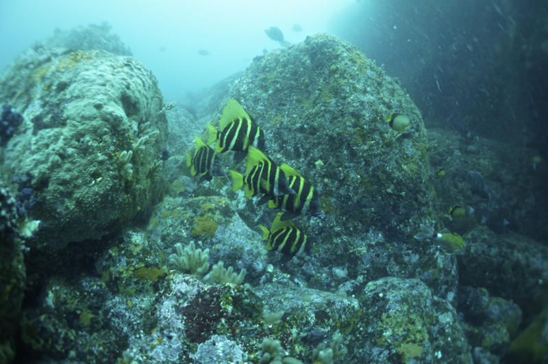 テングダイの群れ、マダイ、コショウダイ、ヒラメ、ホシエイなどなど。