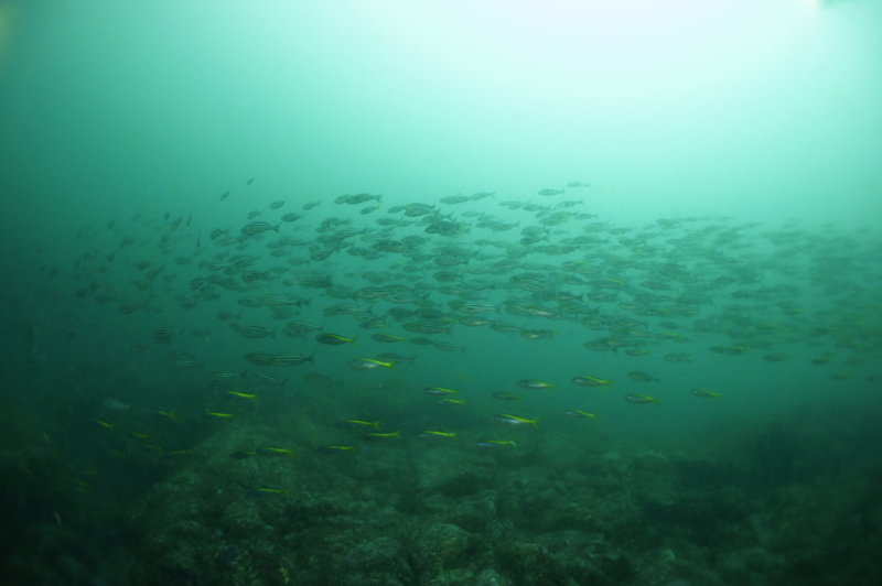 それでも、潮の当たる場所では、イサキ・タカベを中心に魚影濃く