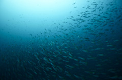 カツオの群れ、ヒレナガカンパチの群れ、モロコなどなど、