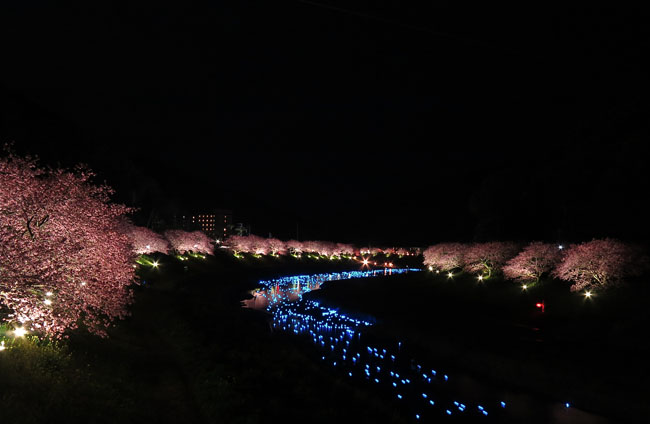 第17回みなみの桜と菜の花まつり2015/1/30 (金)1016 views 今年も開催です。第17回みなみの桜と菜の花まつり。期間中は18:00〜21:00まで夜桜ライトアップです。イベント「夜桜☆流れ星」は3月1日〜7日に開催。18:00〜20:00(悪天禁止)。※「いのり星」という水に反応して光るLEDの球体を、夜桜ライトアップされた青野川に約500m/約4,000個放流し、川が「天の川」のようになります。オススメです。期間中は会場川沿いに屋台も出て賑やかですよ。