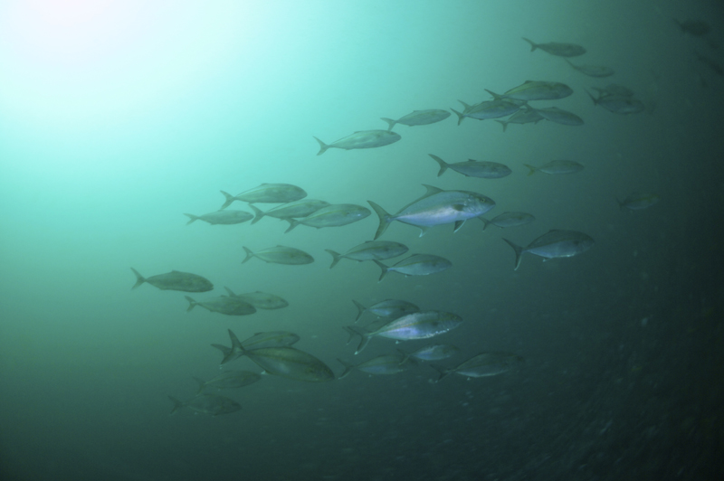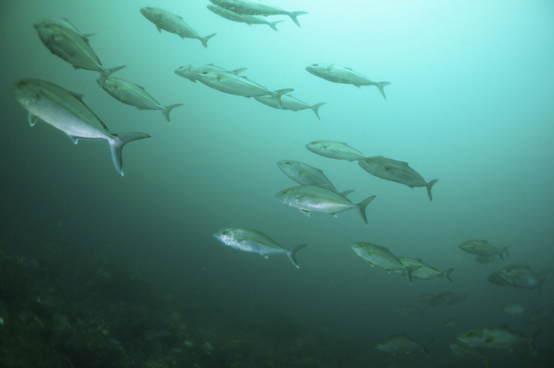大型のシマアジやヒラマサなども見られ、大迫力!!