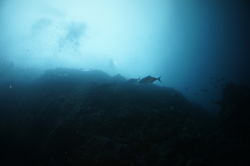 安全停止中には、クサヤモロの群れを狙う!?メジロザメが!