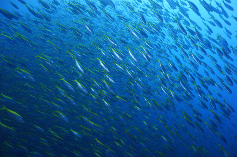 ボトムには、アカヒメジの群れ・フエダイの群れ・カゴカキダイの群れ・ムツの群れがワイワイと!