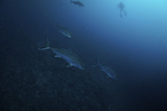 2016.03.27の神子元島 カンパチの群れ(^_^)v2016/3/27 (日)1653 views天気晴れ 気温15℃ 水温16〜17℃ 透明度10m 潮流下り潮 ポイント江の口〜×2みなさん、こんにちは(^^) 本日は天気良く、凪も良いダイビング日和となりました。 透視度は落ちましたが、水温は一番暖かな所で17℃までアップ! そして、近くまで、20℃の潮が来てるそうです(^^) このまま、水温アップしてもらいたいです! 今日も速い下り潮が流れ、タカベ・イサキ・ムロアジ・タカサゴが乱舞です! そして、お目当てのカンパチの群れも今日も健在(^_^)v 100尾オーバーの群れにも会いました! 賑やか海になって来ました(^^) それでは、また次回! 本日の動画