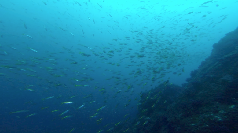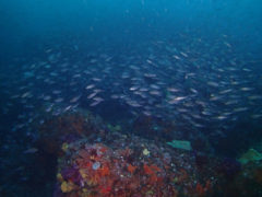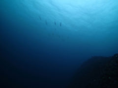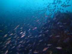 タカベは潮上に向かって大行進!壁のように視界を遮ります。