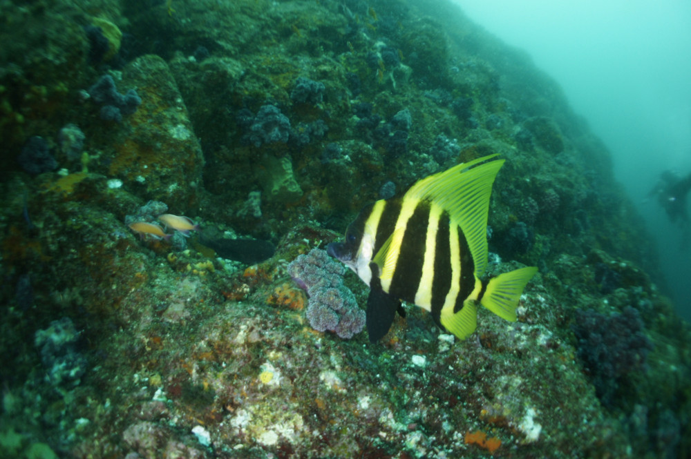 潮はまったりした流れで、透視度が…しかし、水温は下層でも19℃後半、上層では21℃とむらがあまりなく安定してます。
