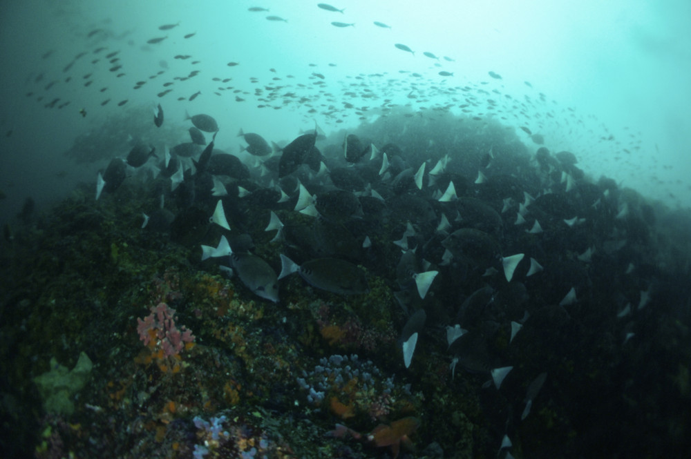 大きなヒラマサ、トビエイ、テングダイ、ウメイロモドキ、メジナの群れなどなど。