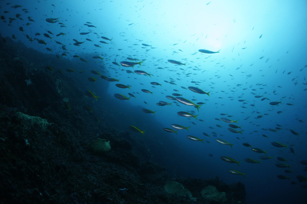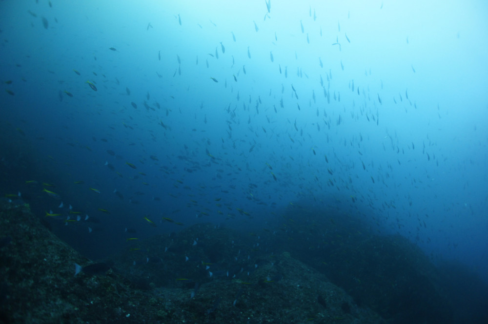 タカベの群れ、イサキの群れ、メジナの群れ、ニザダイの群れ、マダイ、モロコ、テングダイ、