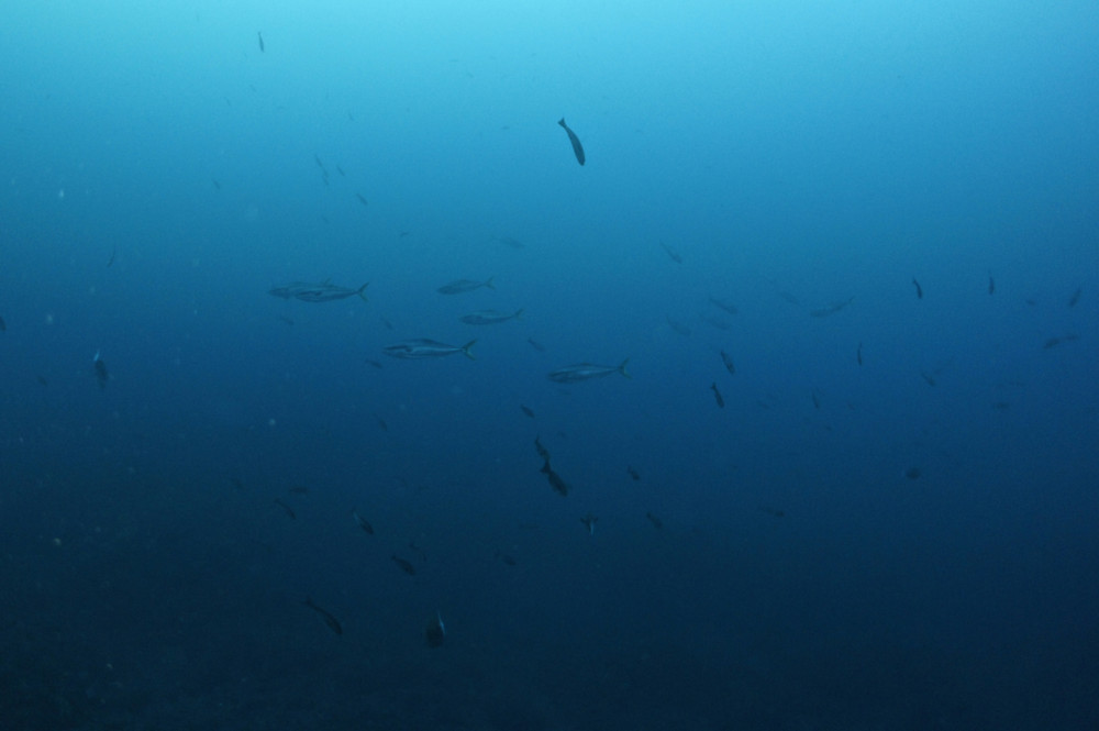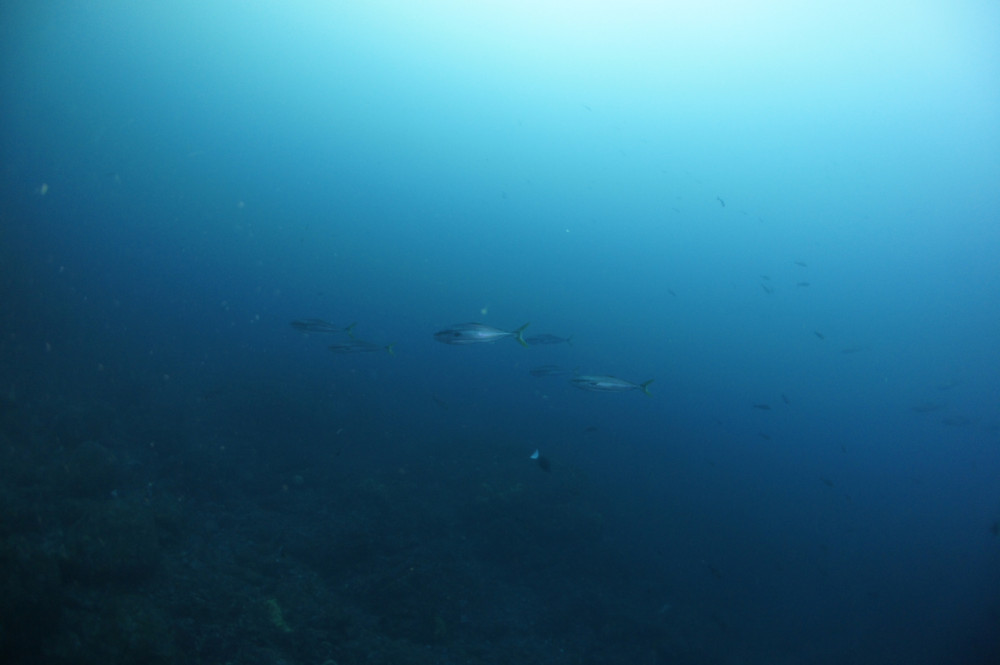 何と、3ダイブ目に、まずは単体が現れ、その後、ハンマーの群れが!!!写真は証拠写真程度ですが・・・