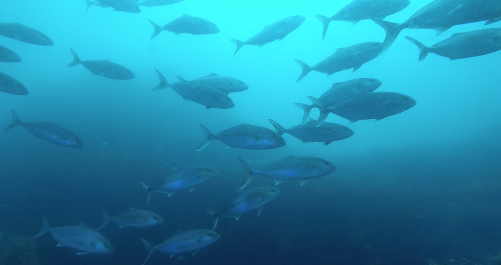 今日はワラサの群れに出会えず、カンパチの群れがチラッと。