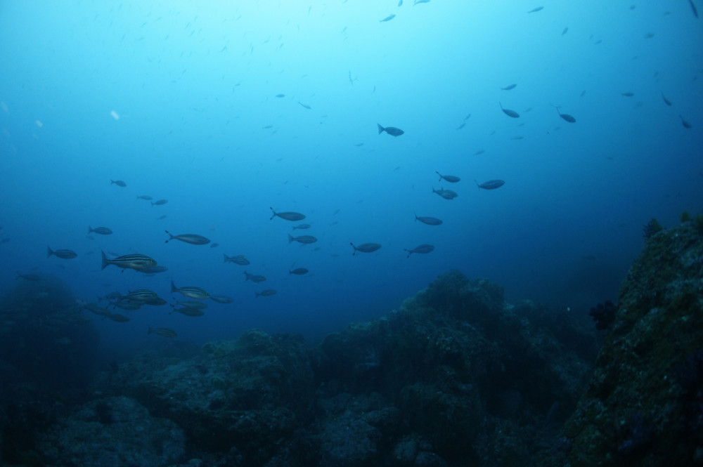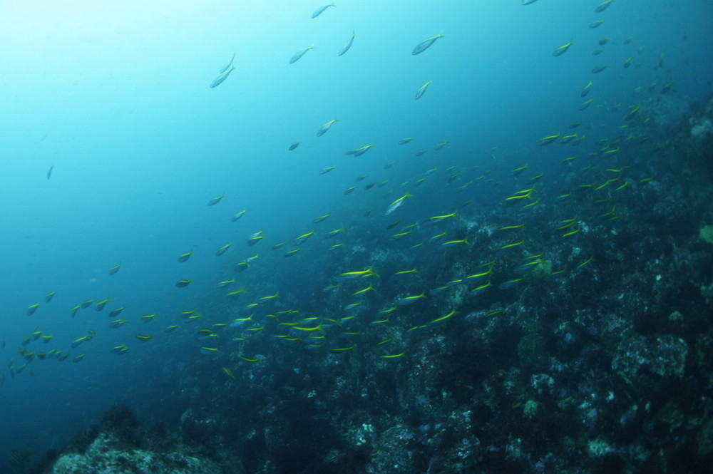 潮当たりの良い場所では、魚影も濃く、カンパチ・ワラサの群れも。