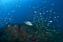 2017.07.31の神子元島 青い海!沖待ち4DV(^O^)2017/7/31 (月)2479 views天気晴れ 気温27℃ 水温20〜26℃ 透明度10〜25m 潮流下り潮〜じごみ ポイント江の口〜×2・青根〜・ジャブ根〜みなさんこんにちは!! 本日も張り切って行って来ました。 水中も青く温かい潮が頑張り、20m近くまでブルーな世界です。 時間毎に多少透視度の変化はありますが、それでも上層は青く素敵な海です♪♪ 生き物も種類豊富に! あっという間の4DVでした(^^) サメだけにこだわらず、魚群も存分に堪能して来ました。 明日も出航予定です。 それではまた明日!! SONY DSC