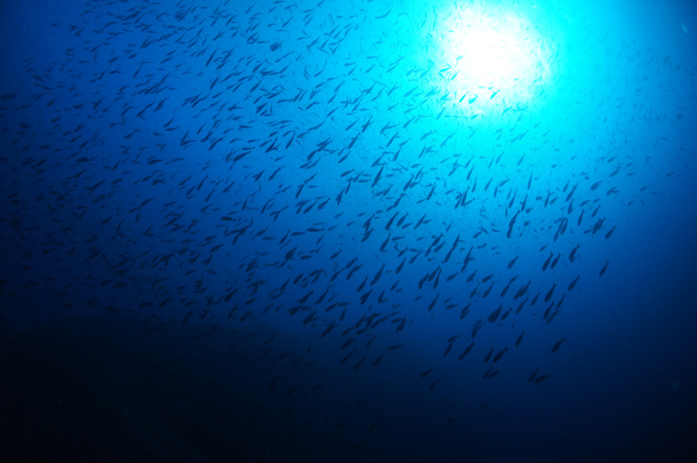 周りには、ワラサの小群れ!大きなカンパチの小群れ、さらに下の水底にはエイラクブカの大群!!!