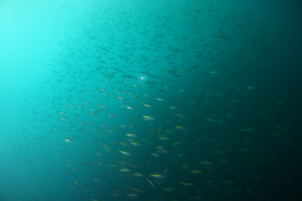 タカベ・イサキの大群れ、クサヤモロの群れ、タカサゴの群れ、ニザダイの群れ、