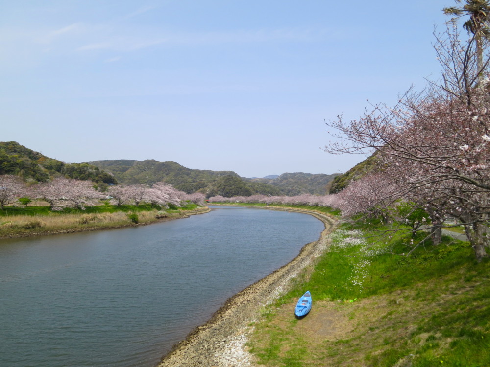 ソメイヨシノが見頃に@弓ヶ浜青野川2019/4/7 (日)1370 views 弓ヶ浜でもようやくソメイヨシノが見頃に、もうすぐ満開です。みなみの桜(2月)〜ソメイヨシノ(4月)と南伊豆では長めの春が楽しめますよ。未経験の方は海やサービスデーと合わせて楽しさ倍増、是非お楽しみ下さい。
