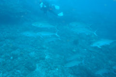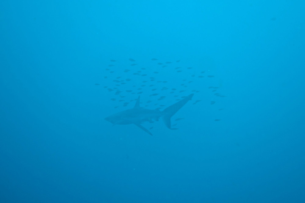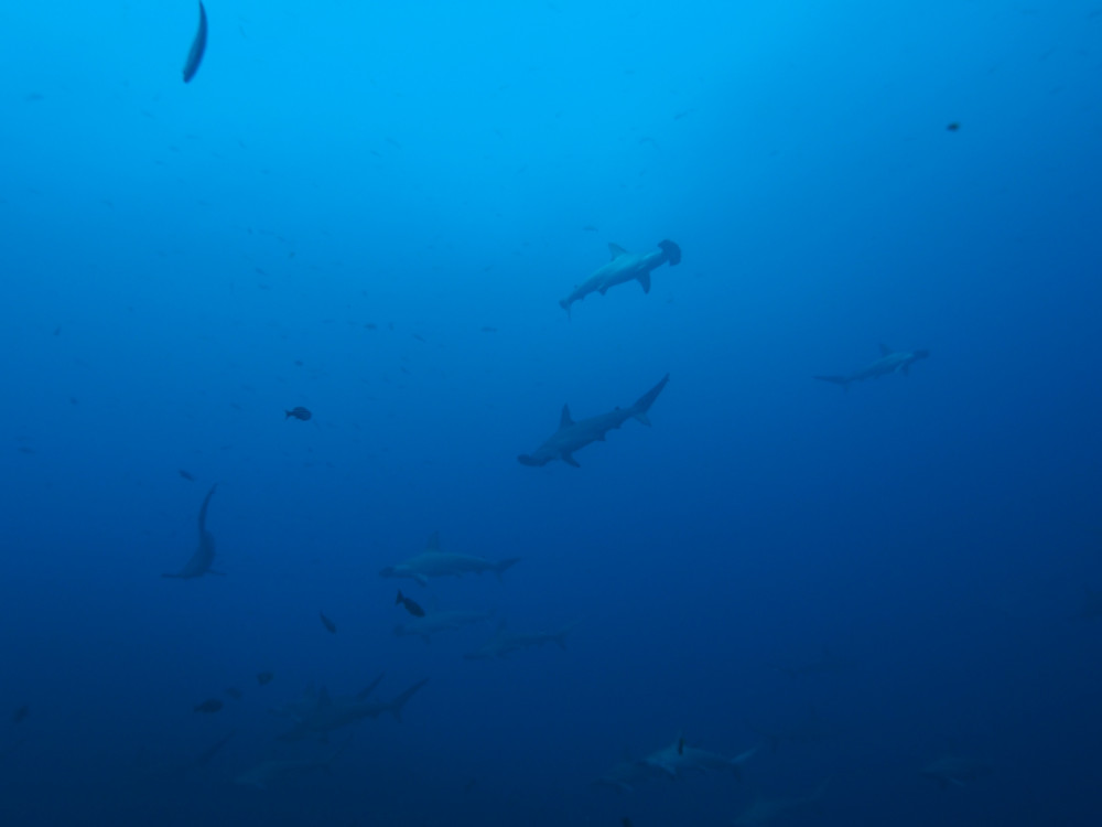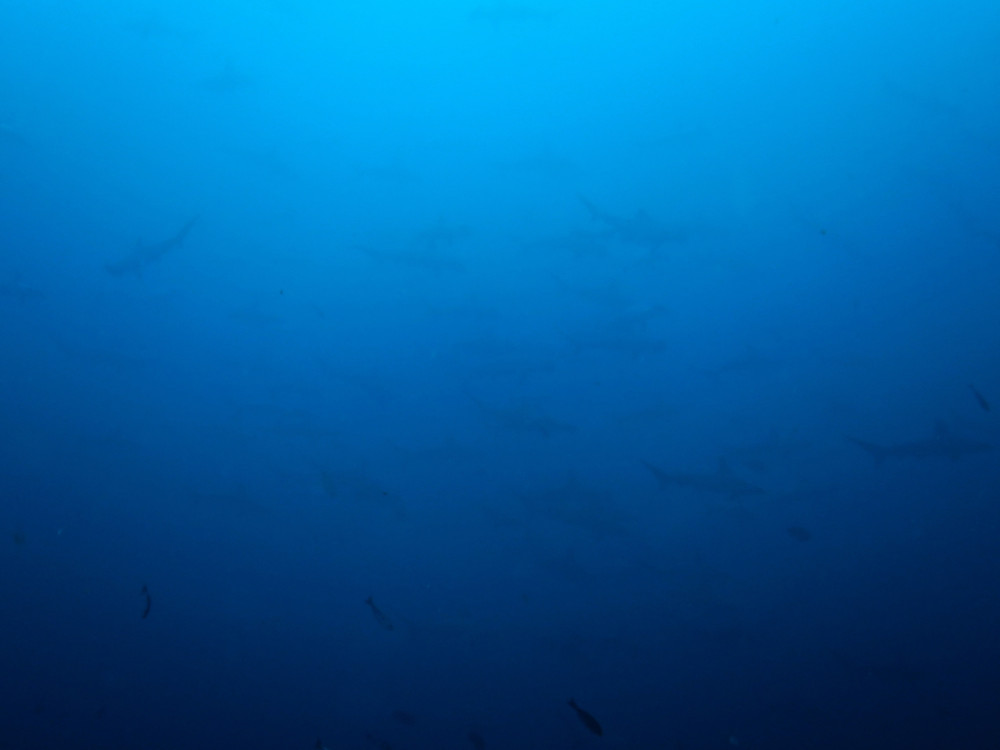 ハンマーの群れでは終わらず、カマストガリザメの群れやメジロザメ。