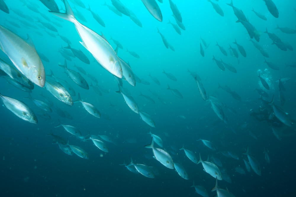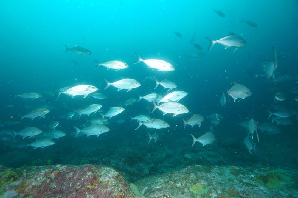 アオウミガメ、オオニベの群れ、ハマフエフキの群れ、タカサゴの群れ、イサキの群れ、タカベの群れ、