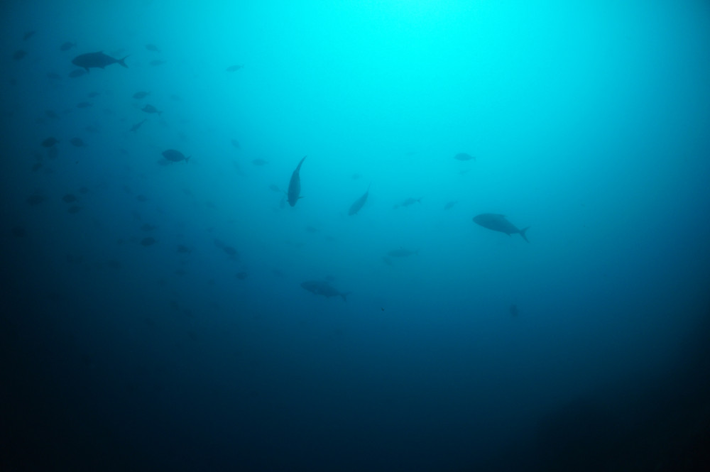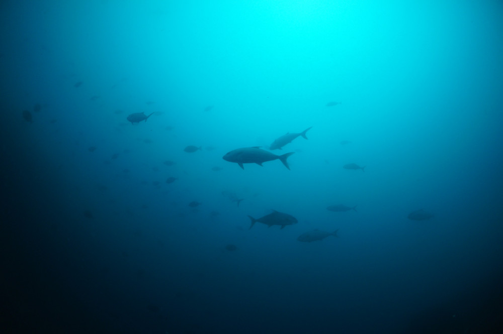 大きなカンパチ、ヒレナガカンパチの群れ!