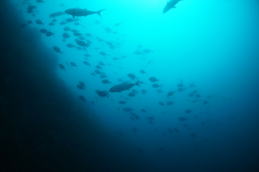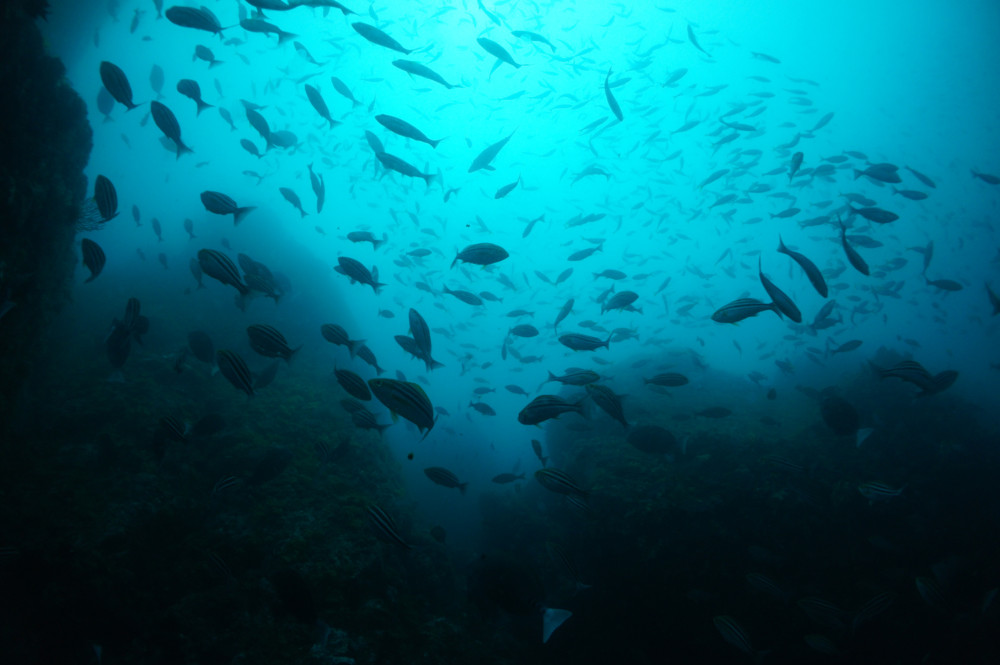 タカベの群れ、イサキの群れ、ヒラマサ、タカサゴの群れ、イシダイの群れ、メジナの群れ、