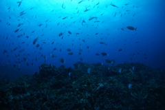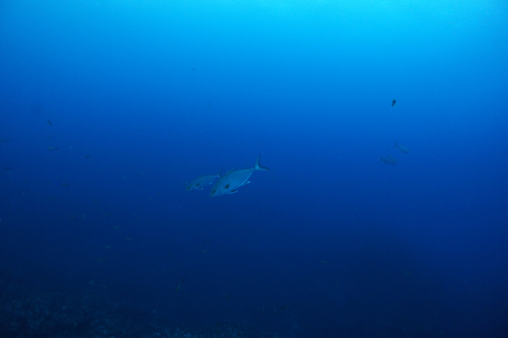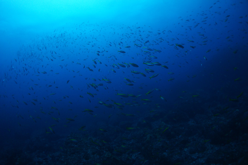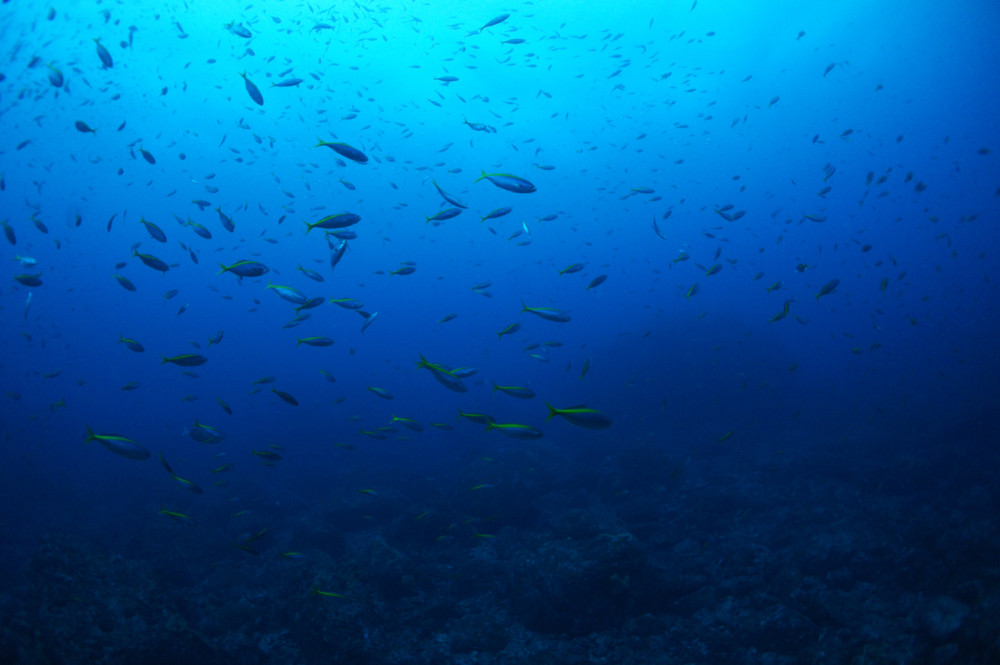 カンパチの群れ、ハガツオの群れ、クロホシフエダイの群れ、フエダイ、コショウダイの群れ、