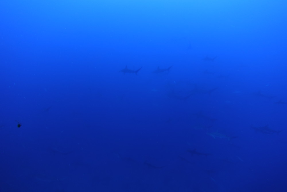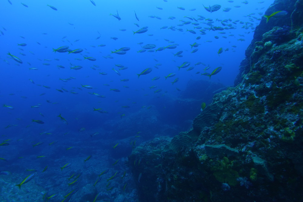 2019.06.27の神子元島 嵐の前の静けさ2019/6/27 (木)1506 views天気曇り 気温27℃ 水温23〜24℃ 透明度10〜15m 潮流下り潮 ポイントカメ根×2みなさん、こんにちは。 今日は生憎の空模様でしたが、ダイビングの間はなんとか雨も降らずにこらえてくれました。 水中の方はといいますと、昨日よりも透視度、水温共に多少ダウンしました。 とはいって、多少白濁していますが、10〜15mは見えていますし、水温も23〜24℃あり、非常に快適な水中です。 水温変化のせいか、多少魚影が薄い感じがありますが、気持ちのいい下り潮の中で、ハンマーの群も見えてます。(写真はいまいちですが) 明日は台風(熱帯低気圧)の為に、船を避難港に避難させ、欠航になります。