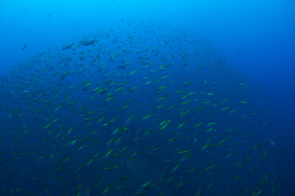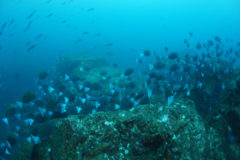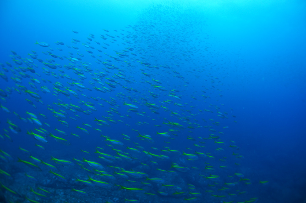 魚も多く、タカベの大玉、イサキの壁、マダラエイ、コショウダイの群れ、