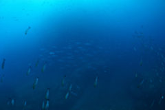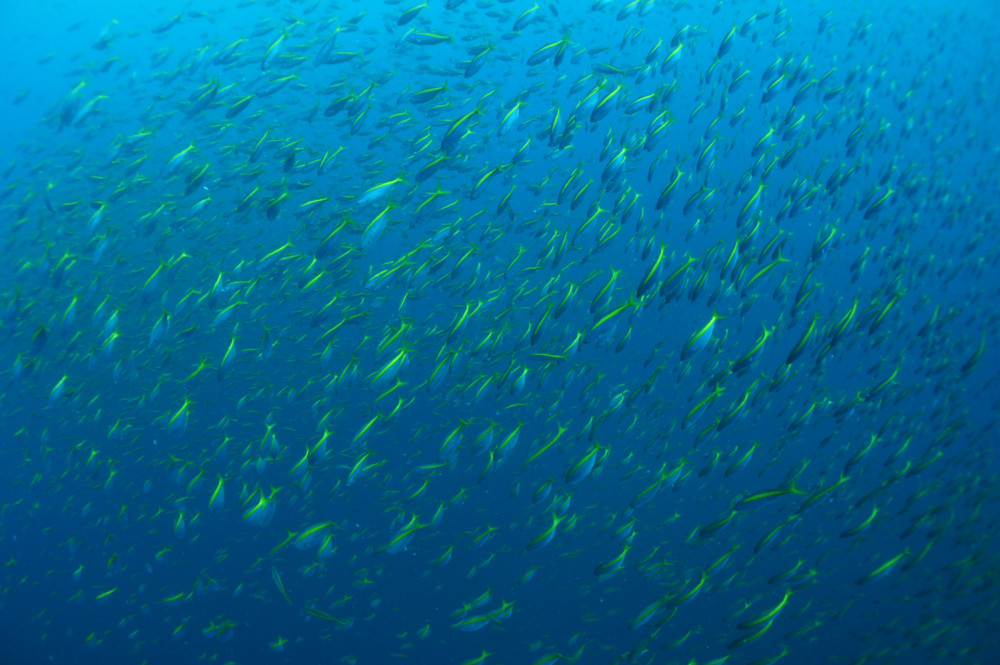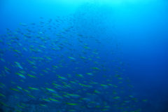 上層のタカサゴの群れは、光を浴び、とてもキレイでした。