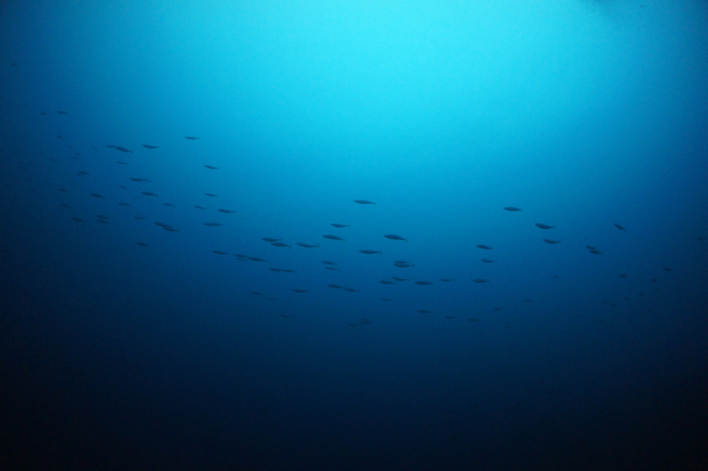 水温25〜26℃、透視度10〜15mでしたが、お日様無いので、暗かったです。