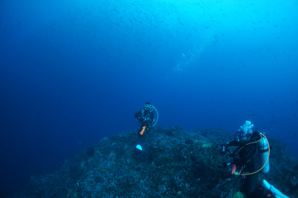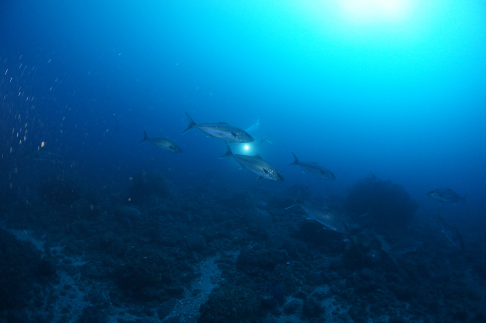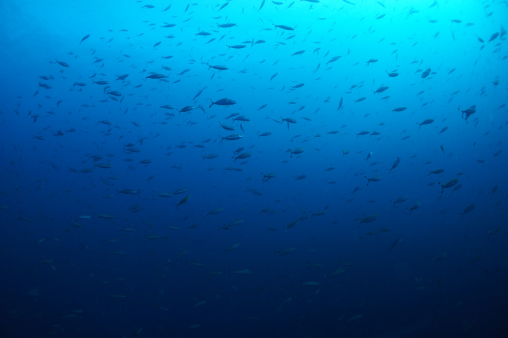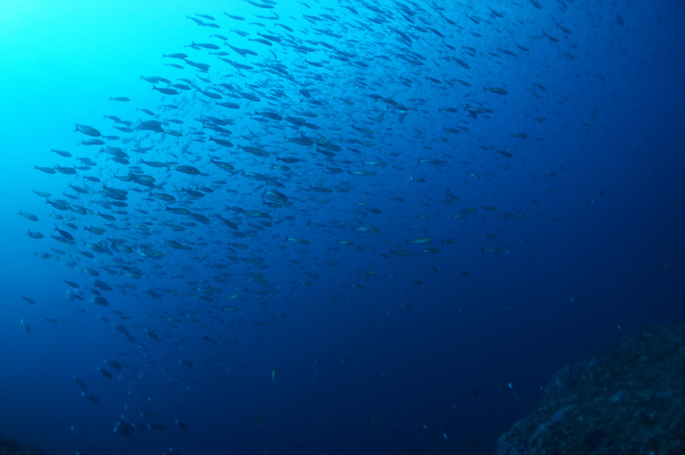 特に、タカサゴの群れが多く、タカベ・イサキ・メジナと重なり、視界一面ぐっしゃりです。