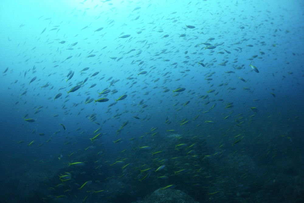 タカベの群れ、イサキの群れ、クサヤモロの群れ、ハマフエフキの群れ、