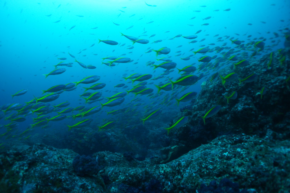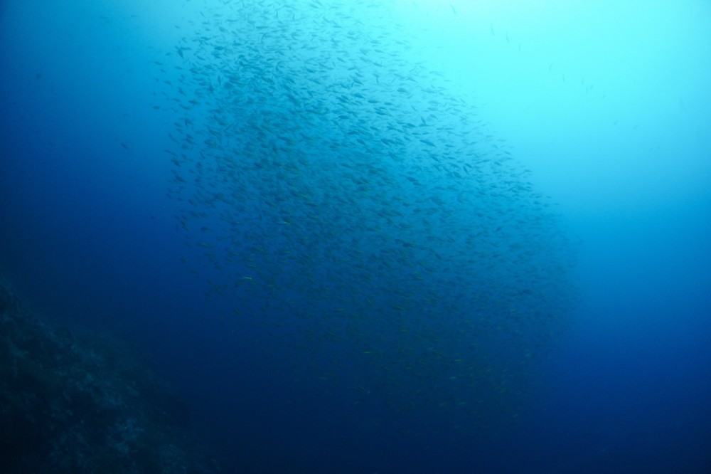 ツムブリの群れ、カンパチ、ウスバハギの群れ、ニザダイの群れなどなど。