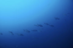 ワラサの群れ、オオニベの群れ、カンパチの群れ、ヒレナガカンパチの群れ、