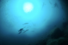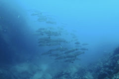 カンパチの群れ、オオニベの大群れ、ヒレナガカンパチの群れ、ムロアジの群れ、