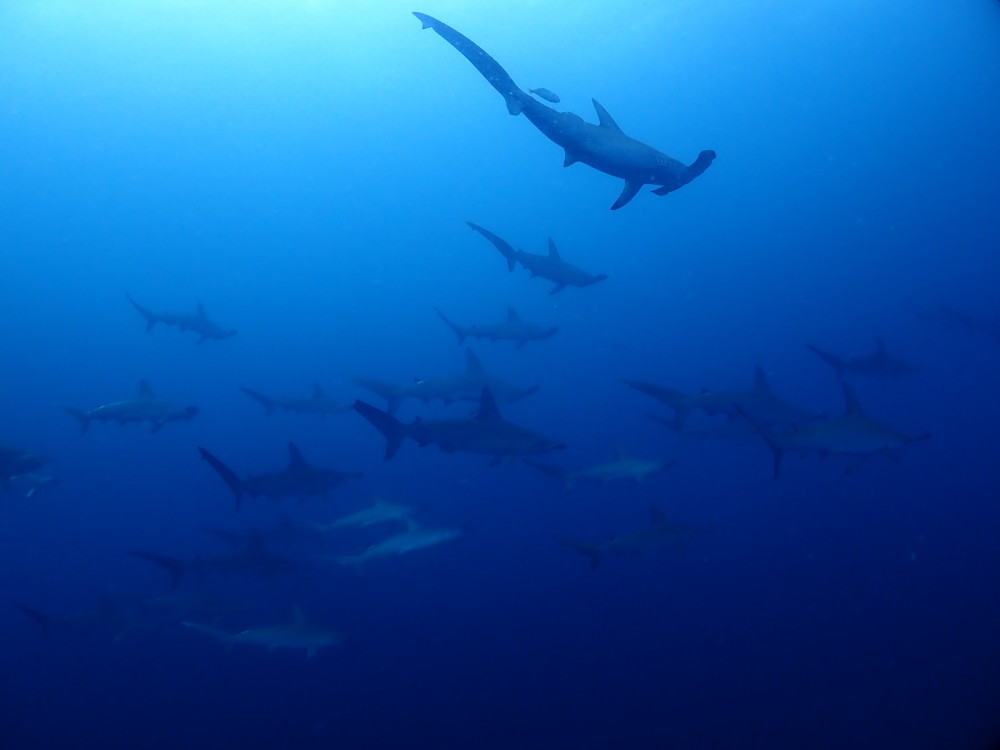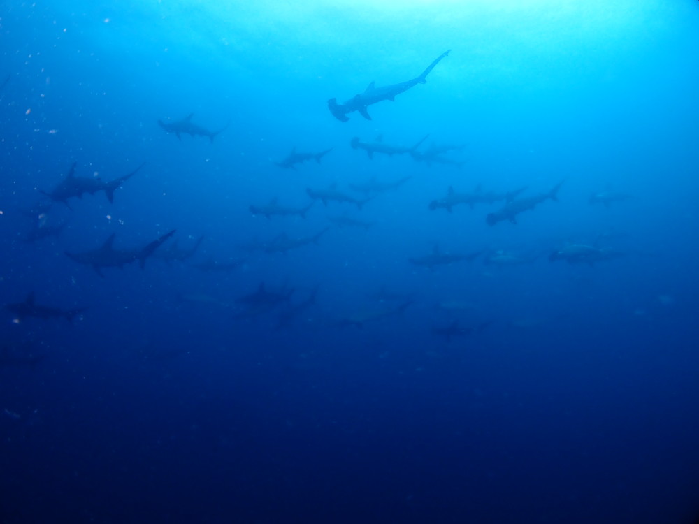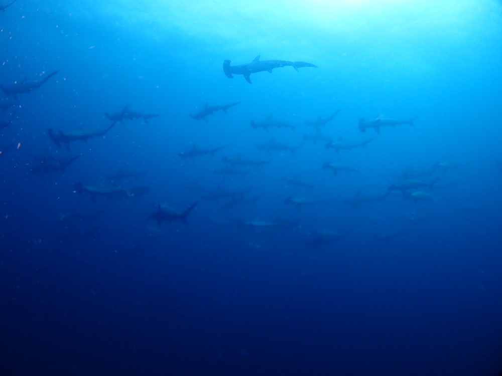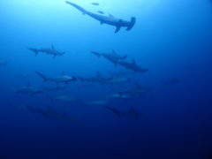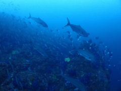 ツムブリの群れ、ヒレナガカンパチの群れ、ハタタテダイ、ツバメウオ、アオウミガメ、など