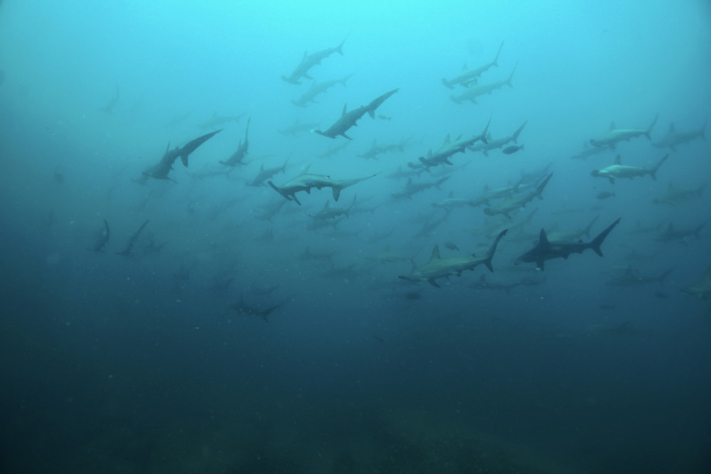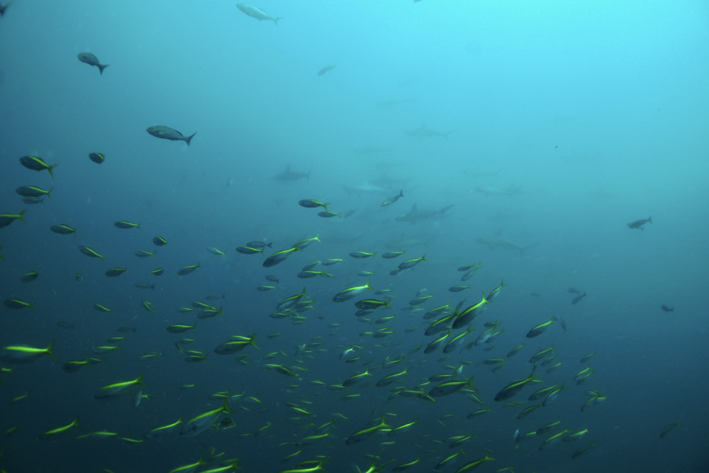 1ダイブ目は、本日の乗船メンバー全員でAポイントで、ハンマーの群れを鑑賞しました。