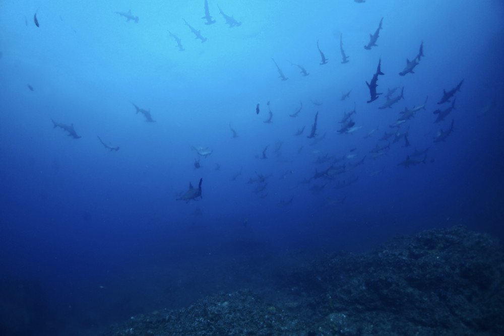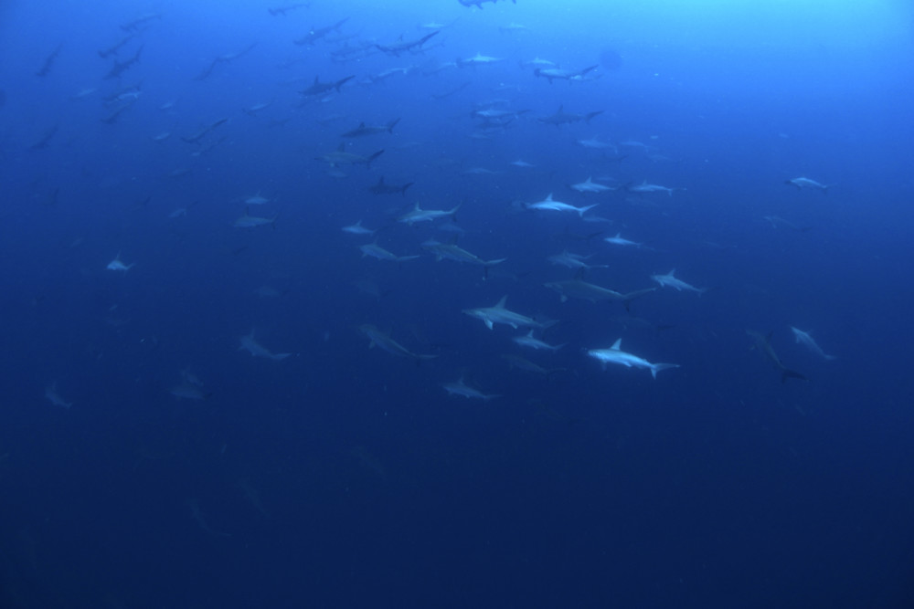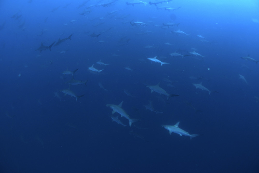 ハンマーの群れを注視してみるとオス個体やヘビー級超絶ビッグな個体も混ざっておりました。
