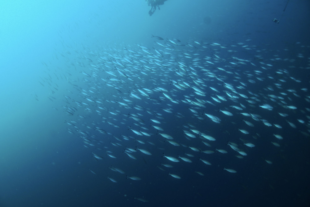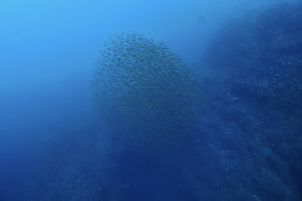 カマストガリザメ、イサキの群れ、クサヤモロの群れ、タカベの群れ、タカサゴの群れ、