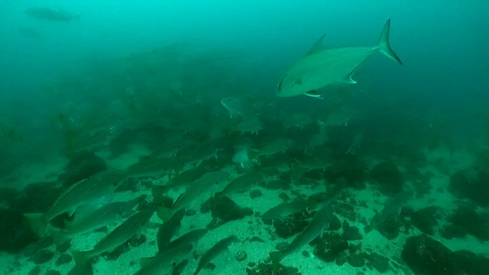 カメ根周辺にはタカサゴとイサキがごっちゃまぜで大きな球を作っていたり、