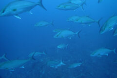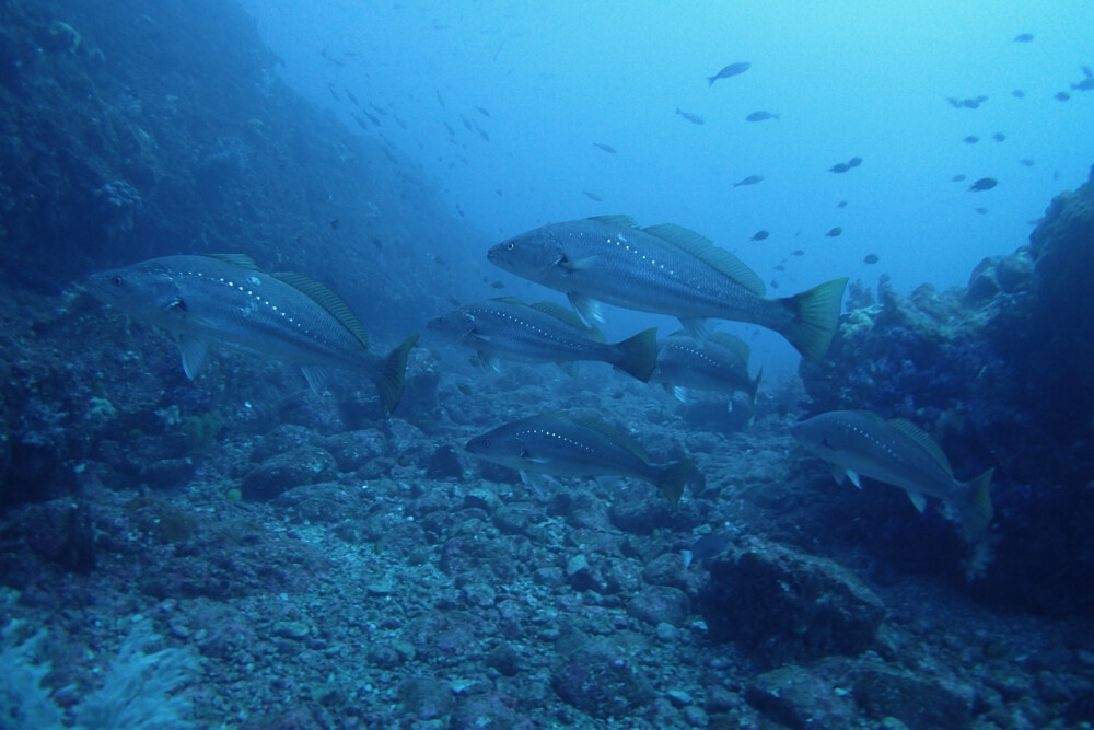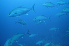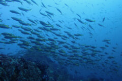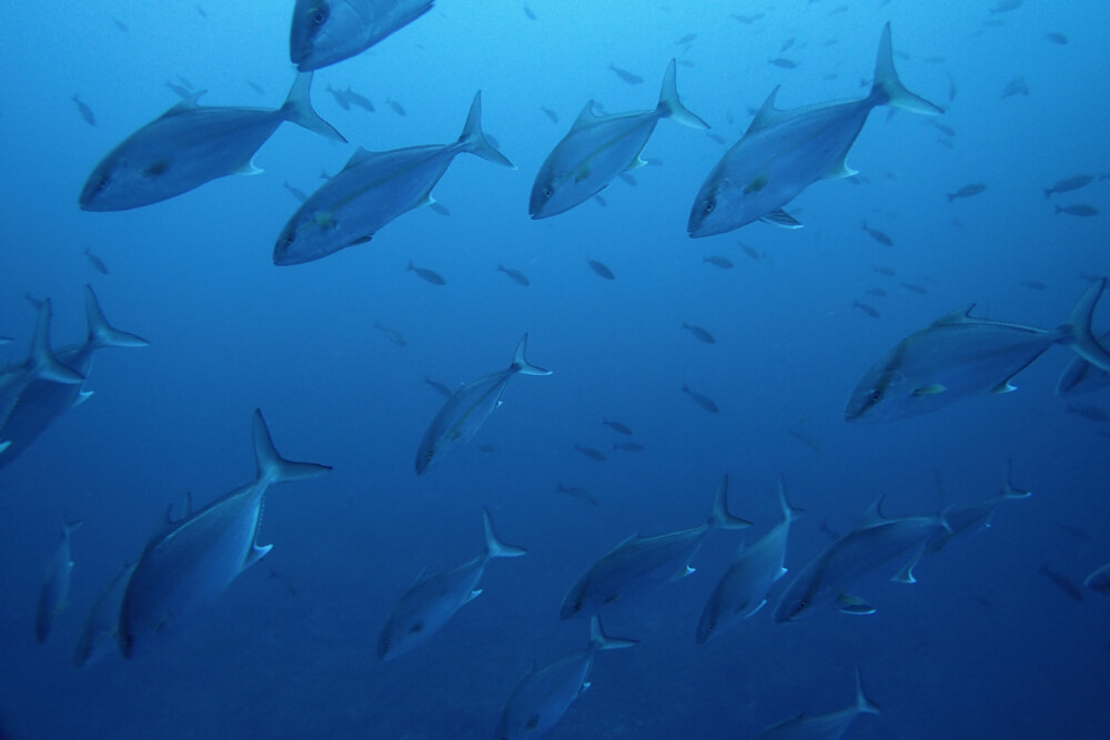 一方、小ぶりのヒレナガカンパチ軍団はとってもフレンドリー。