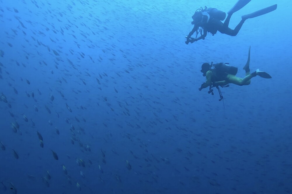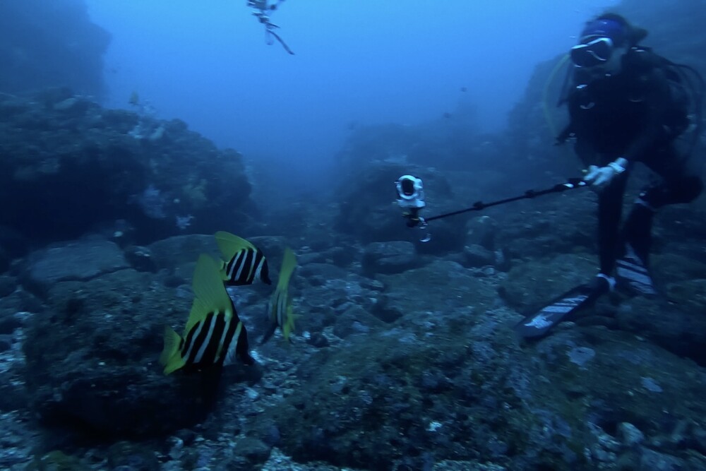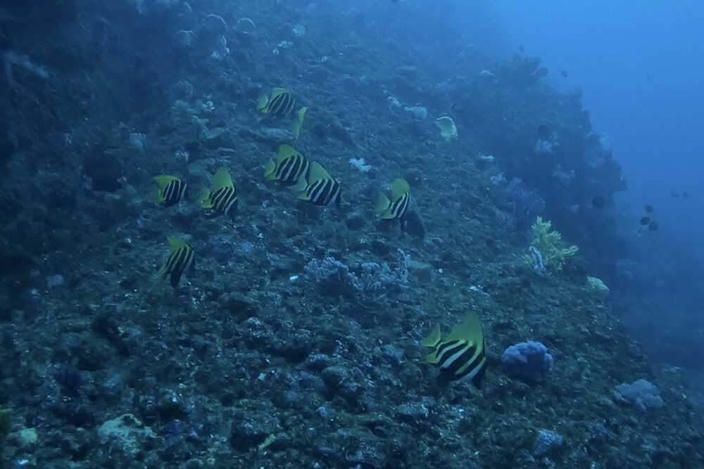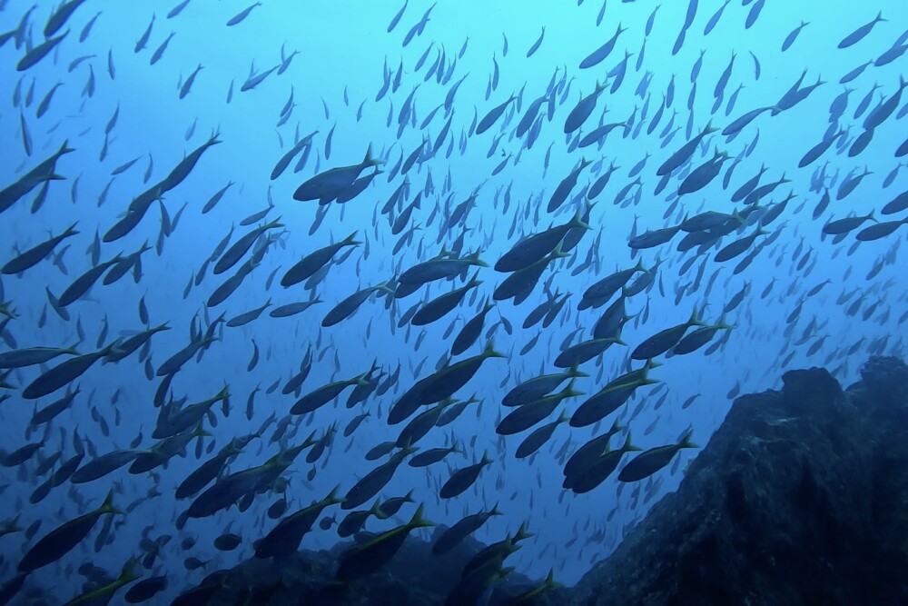 その他にも、青い海で乱舞するタカベや、これまたちょっとツンデレ気味のワラサの群れなど、今日は海が青くて全てが綺麗に見えました。