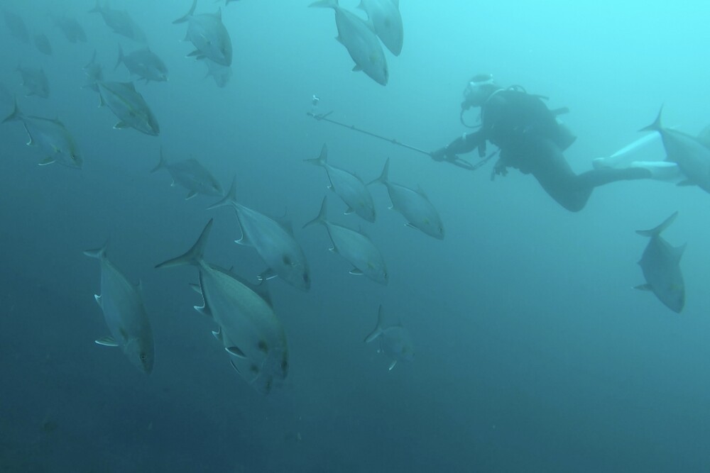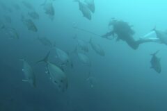 その他に、ヒレナガカンパチ、オオニベ、ワラサの群れ。