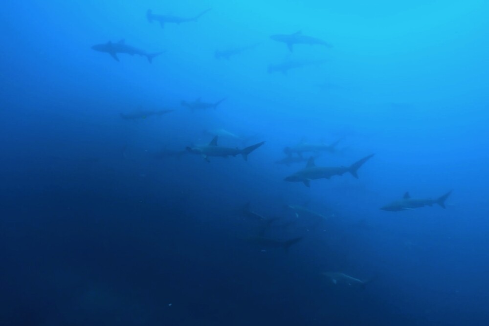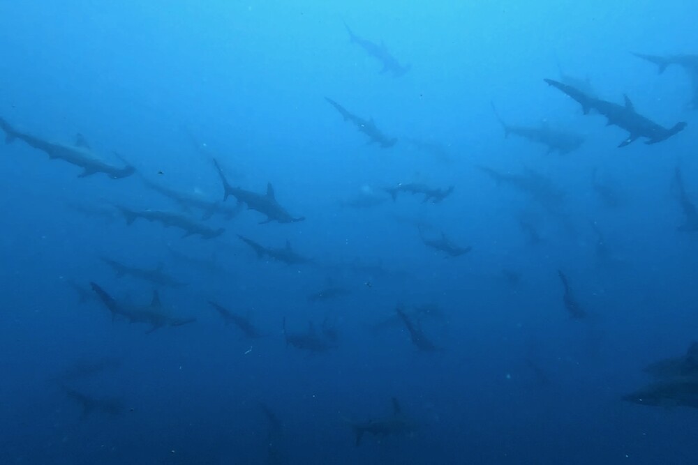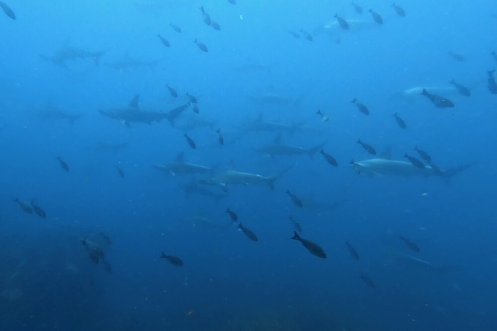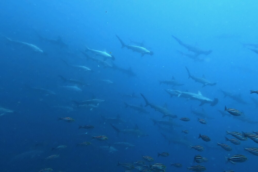 またはオオニベ&カンパチ越しのハンマーの群れ!