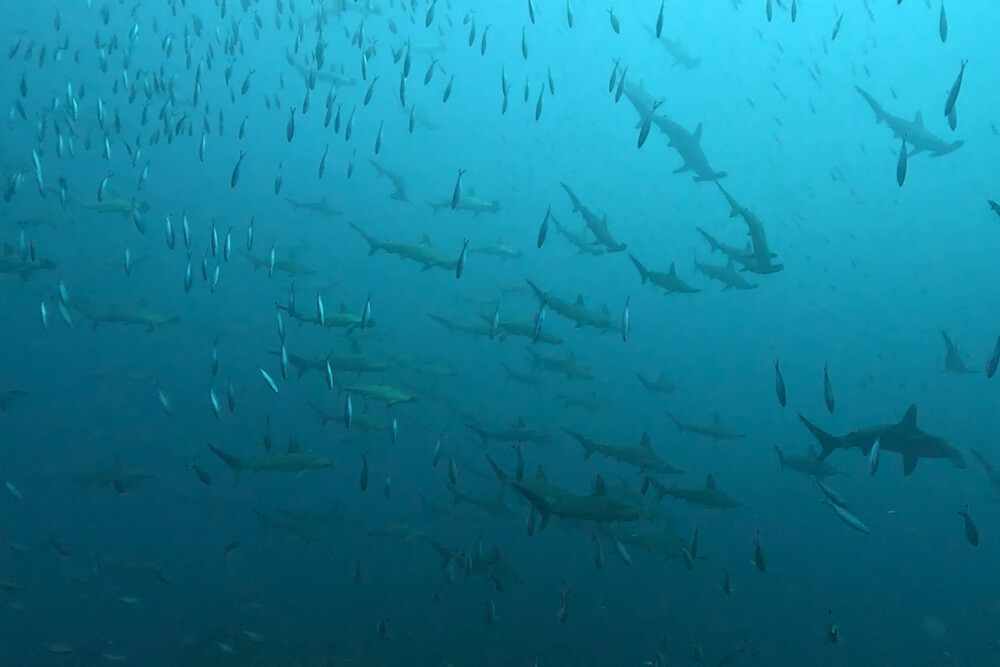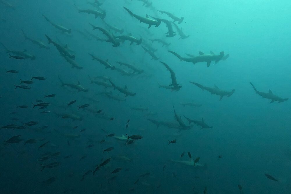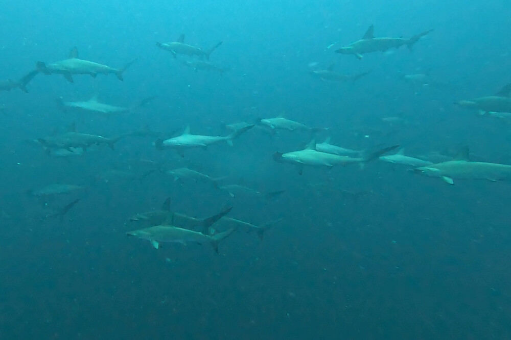 潮が弱く、下が冷たいため、ハンマーの群れも横長なイメージ。