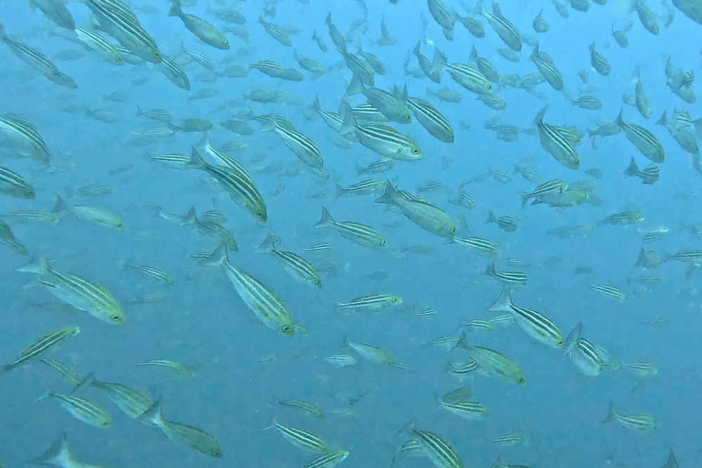 小サイズのウメイロの群れ、ツムブリの群れなど。
