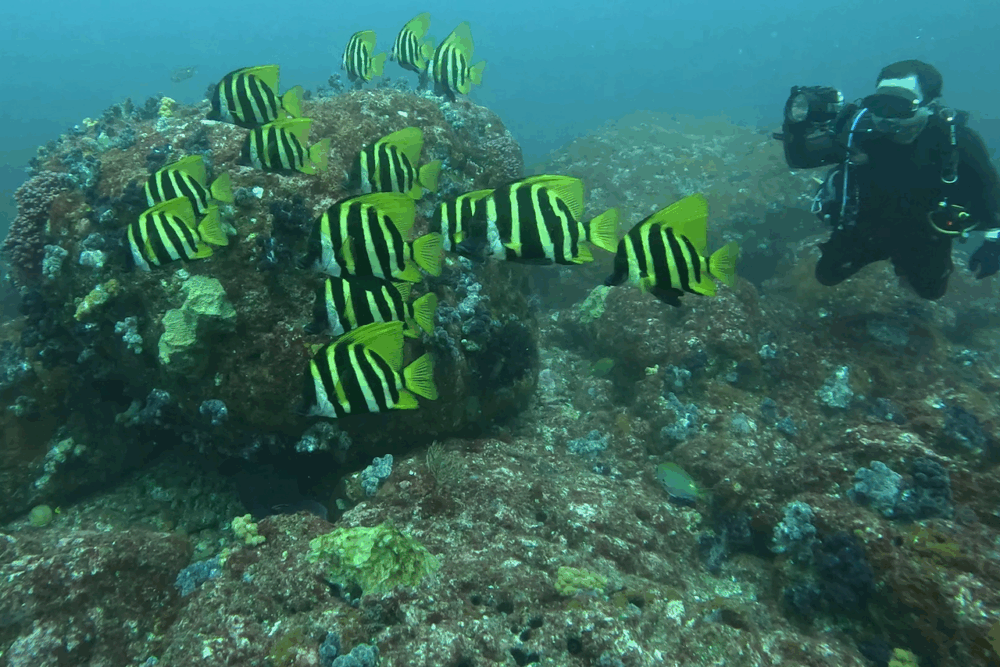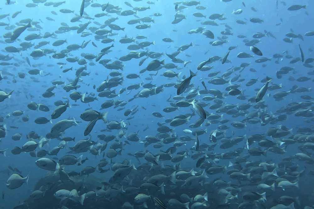 浅場の青い層を滑空する単体〜小群れが中心でした。