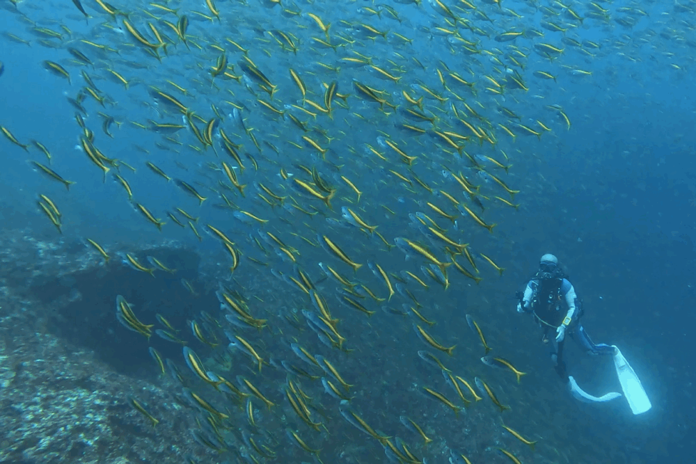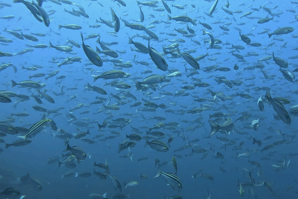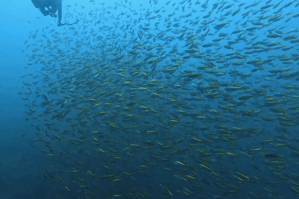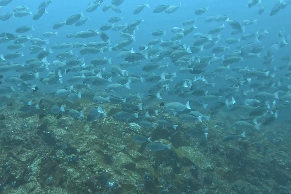 浅場ではタカサゴ、ムロアジ、キラキラして輝いてたよ♪
