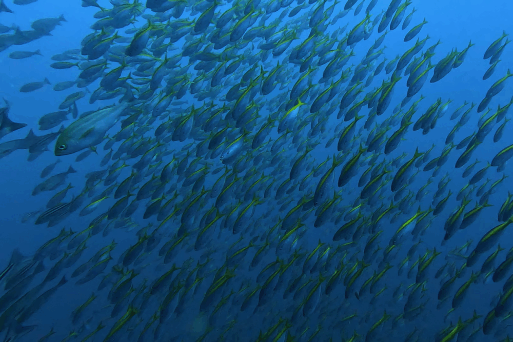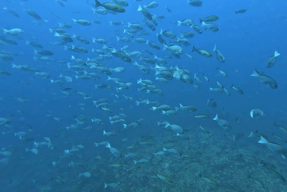小さなシイラの集団が水面付近を泳ぎ回っていたよ!