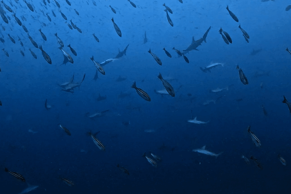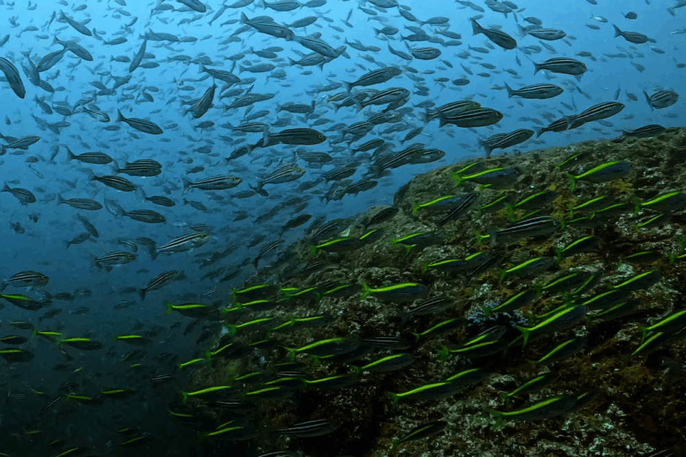 タカベ、イサキ、タカサゴ、ムロアジの群れに、